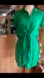 Stylish Kelly green shirt dress with short sleeves and a front tie detail. Perfect for casual outings. Lightweight breezy comfy fabric