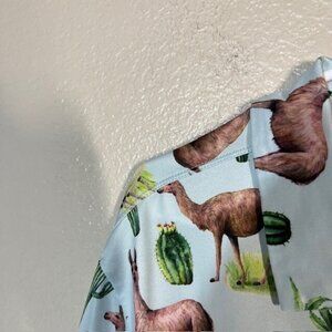 Green Side Golf Polo Mens Large Llama Athletic Stretch Blue Green
