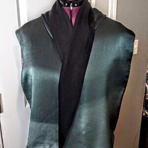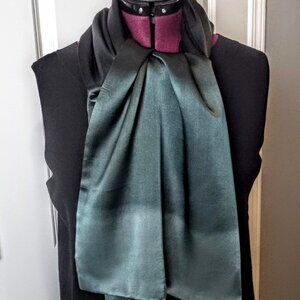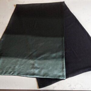 Luxurious double-sided oblong scarf/wrap - subtle green ombre silk on one side and solid black wool on the other side.