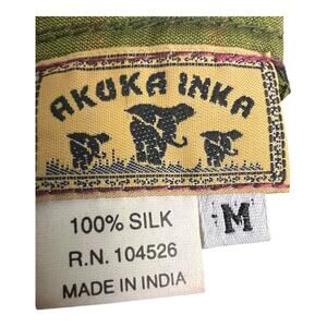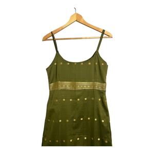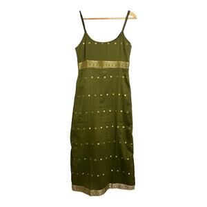 Green Silk Dress India Gold Sheer Luxe Ethnic Exotic M Medium Boho