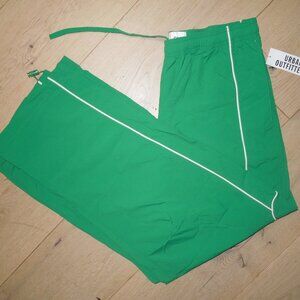 Athleisure, track pants, streetwear, retro sportswear, joggers, green pants, Urban Outfitters, casual wear, Y2K revival, sporty chic, loungewear, statement pants, colorful fashion.