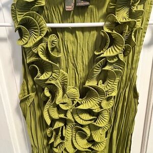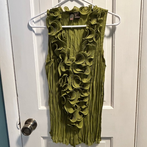 Elevate your style with this chic green sleeveless top by Sere Nade NY featuring elegant ruffle down the front. Polyester stretch fabric. Perfect for any occasion. Beautiful olive green color. Size M. NWOT.