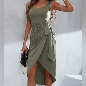 Green Sleeveless Tank Side Tie Hi-Lo Wrap Dress Size Medium