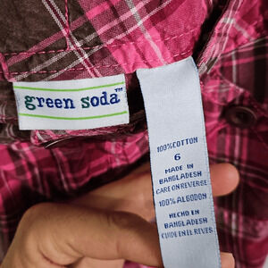 Green Soda Girl's 6 Gingham Plaid Bermuda Shorts Deep Pink And Burgundy Cotton