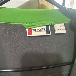 Vibrant green softshell jacket with zip closure. Comfortable and stylish. Has commute logo of left chest