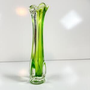 Excellent vintage condition with no chips or cracks. Perfect as a bud vase for fresh or dried flowers, or simply as a decorative art glass piece. The vibrant green color and elegant form make this a wonderful accent for mid-century modern or contemporary decor.