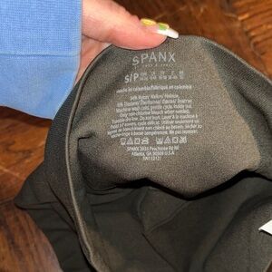 Stylish SPANX leggings. Features a gold zipper detail. Perfect for casual wear.