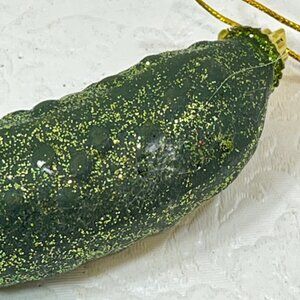 Green Sparkle Pickle Blown Glass Christmas Tree Holiday Ornament 3.75"