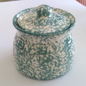 Green Spongeware Pottery Cottagecore Storage Jar w/Lid