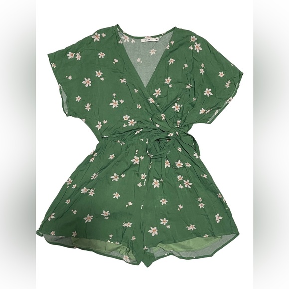 Green Summer Romper Short with floral detailing