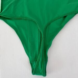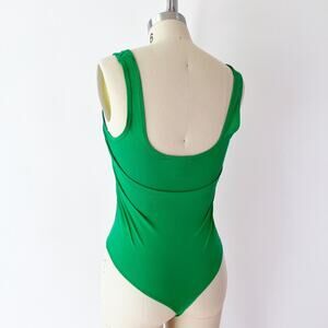 Green square neck bodysuit by House of Harlow • soft and stretchy • clean and no stains • deep scoop back • ribbed seamed front • Kelly green • would look cute layered under a black and white flannel with black jeans • these retail over $100