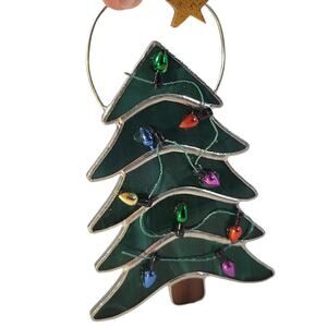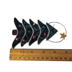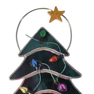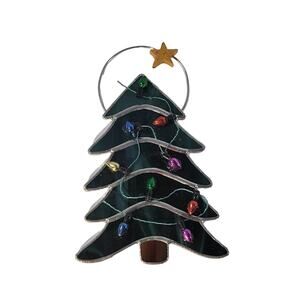 Add a touch of holiday cheer with this stained glass Christmas tree ornament. Features multicolor lights and a star topper, perfect for your festive décor. Approx. 5" tall. Packaged and shipped carefully from a smoke-free environment. Check my Feedback and other listings.