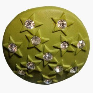 Green Star Button Earrings Rhinestones Pierced Posts Whimsy