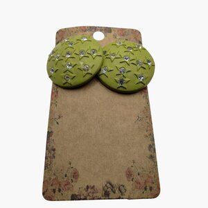 Green Star Button Earrings Rhinestones Pierced Posts Whimsy