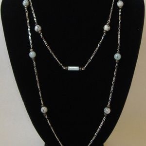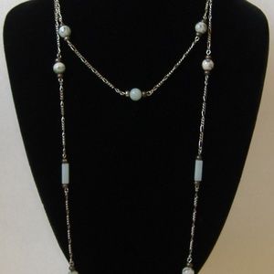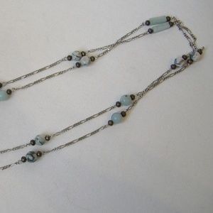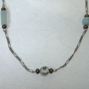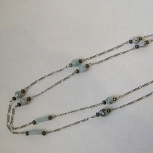 Green Stone Beaded Silver Metal Chain Necklace New