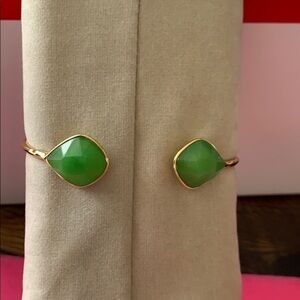 Beautiful cuff bracelet by Stella & Dot! The gold bracelet is adjustable for SM-LG wrists. The two Kelly green stones are beveled and give such a beautiful touch to this piece.