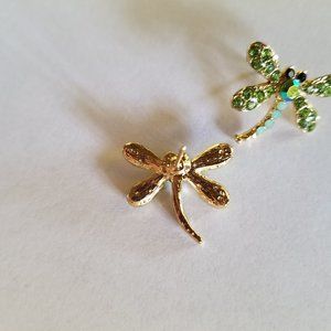 This is a pair of Super-Cool Firefly Push-Back Post Earrings. The stones for the Firefly's body are Green and AB (Aurora Borealis) stones. The Eyes are Black stones. Push-back Post Earrings. Gold-tone hardware.
