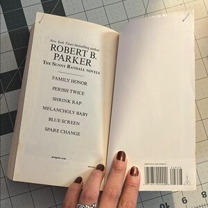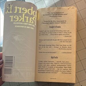 Green paperback book titled 'Stranger in Paradise' by Robert B. Parker. Features a crow on the cover.