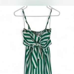 Stylish green striped jumpsuit. Features a flattering fit and comfortable fabric. Worn once, like new. This outfit is great for a beach vacation a brunch with the girls or just as every day wear.