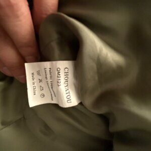 This green jacket combines edgy detailing with a functional design. Featuring an asymmetrical zipper and studded accents, it adds a stylish touch to any wardrobe.