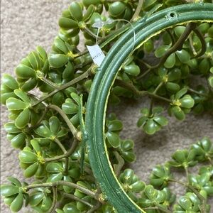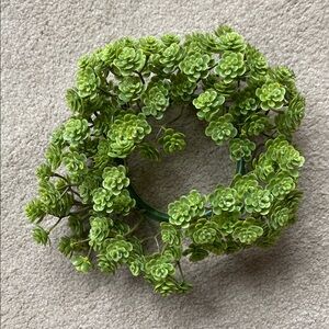 Enhance your home decor with this vibrant green succulent wreath. Perfect for adding a touch of nature to any room.