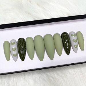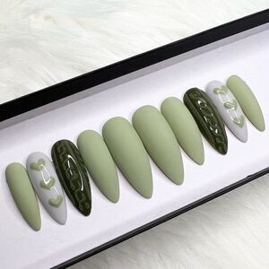 Green Sweater Heart 💚 Custom Press On Nails | High Quality Nails | Handmade