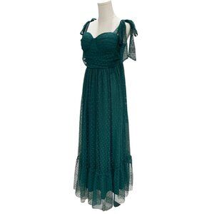 Green Swiss Dot Tie Strap Midi Dress Romantic Coquette Cottagecore Fairycore L