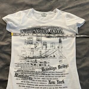 Green T White Embellished NYC Brooklyn Bridge Tee Shirt Knit top