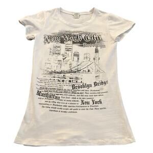 Green T White Embellished NYC Brooklyn Bridge Tee Shirt Knit top