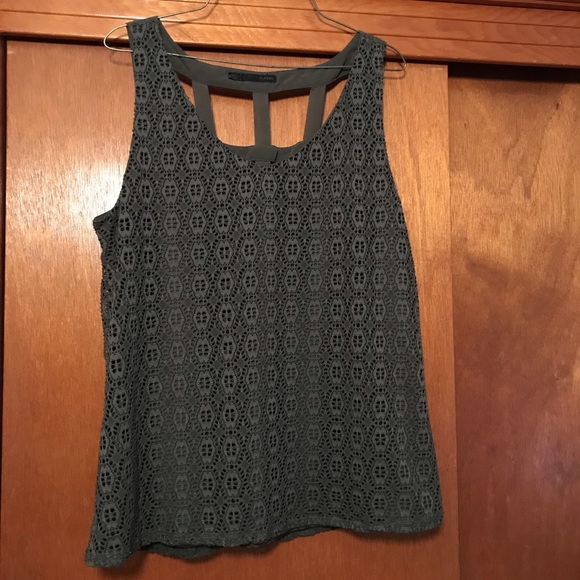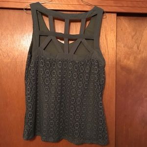Dark greens tank top. From a smoke free home. Worn once years ago. Just been hanging in my closet ever since. Sized at an XL, but does fit small