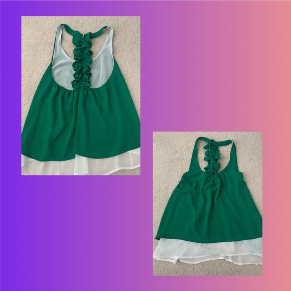 Green tank top with ruffle cute back