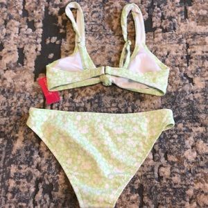 Green with white flowers, size small but fits more like and xs. New with tags. Feel free to ask questions