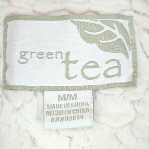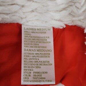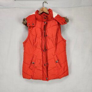 Green Tea Hooded Puffer Vest Sz Med Orange Red Faux Fur Zip Snap Up Sherpa Lined