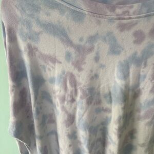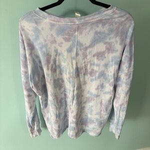 Soft pastel tie-dye sweatshirt. Relaxed fit with long sleeves. Perfect for casual wear.
