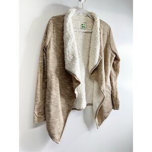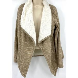 Green Tea Sherpa Lined Open Cardigan Tan Womens Size Medium Side Pockets