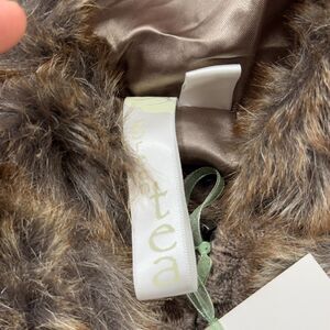 This Green Tea Sweater Vest in size 2XL is a cozy and stylish addition to any winter or fall wardrobe. The taupe color with faux fur trim and a lined hood adds a touch of elegance, while the tight-knit and sleeveless design make it breathable and comfortable for casual outdoor wear. Featuring a full zipper, hood, and pockets, this vest by Green Tea combines practicality with a fashionable look suitable for various occasions.
