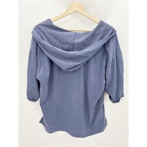 Green Tea Top Women XL Blue Short Half Sleeve Hooded Lace-Up Pullover Hoodie