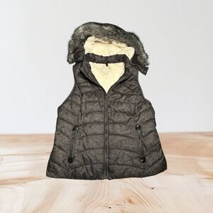 Green Tea Women XXL Heather Gray Faux Fur Hood Puffer Vest Coat NWT Sherpa Lined