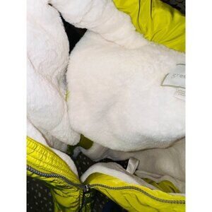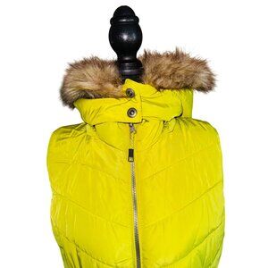 Green Tea Avocado Yellow Puffer Vest Faux Fur Hood Cozy Fur Lining L Outdoor Snow