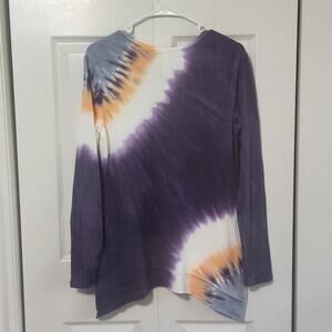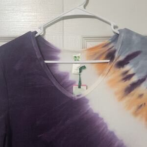 Multi-colored tie dye long sleeve top by Green Tea. Ribbed v-neck. Shark bite hem with double layer & raw hem. I can't express how soft this shirt is!!! NWT