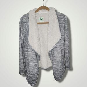 Green Tea Womens Sherpa Wrap Cardigan Size small Gray Open Front