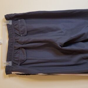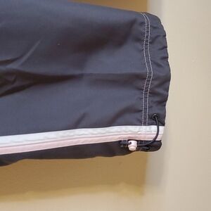 Ladies Green Tea gray athletic pants with pink & white side stripes, bungee pulls at ankle, zip closure with drawstring at waist, 2 pockets front and rear, size XL. Excellent pre loved condition, measurements in pics, smoke free home.