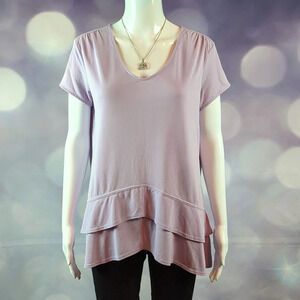 Green Tea sz M Asymmetrical Lavender Double Tiered Ruffle Oversized Stretch Top