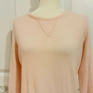 Green Tea Light Blush Pink Waffle Knit Thermal Long Sleeve Sweater Medium