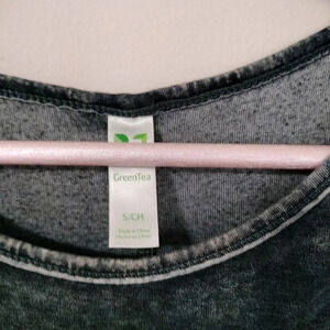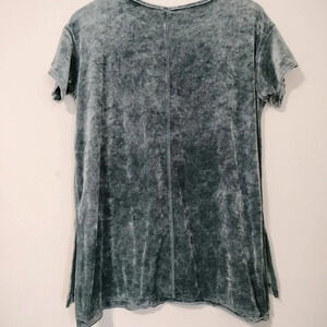 Green Tea Crushed velvet T Shirt Sz Small Side Slits Gray Short Sleeves Measurements laying flat 21" underarms 27" length