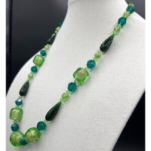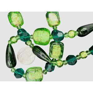Green Teal Glass Necklace Beads Aventurine Multi-shaped Artisan Made 24 + 3"