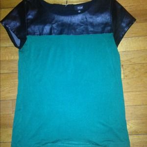 Green Tee with Faux Leather Detail