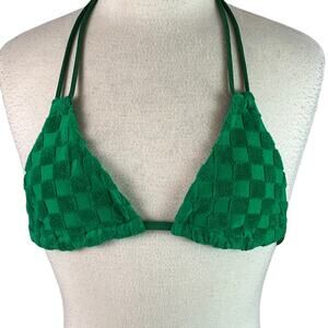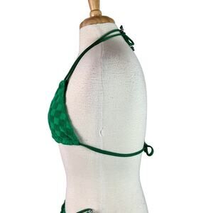 Green Terry Cloth String Bikini Women Medium Checkerboard Textured Cheeky Spring