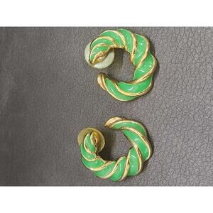 Green Textured Gold Tone Twist Rope Hoop Pierced Earrings