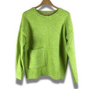 Welcome Fall & Winter in this thick knit Chartreuse sweater from Line & Dot with a VERY useful pocket at front! Acrylic/Polyester/Nylon/Wool/spandex